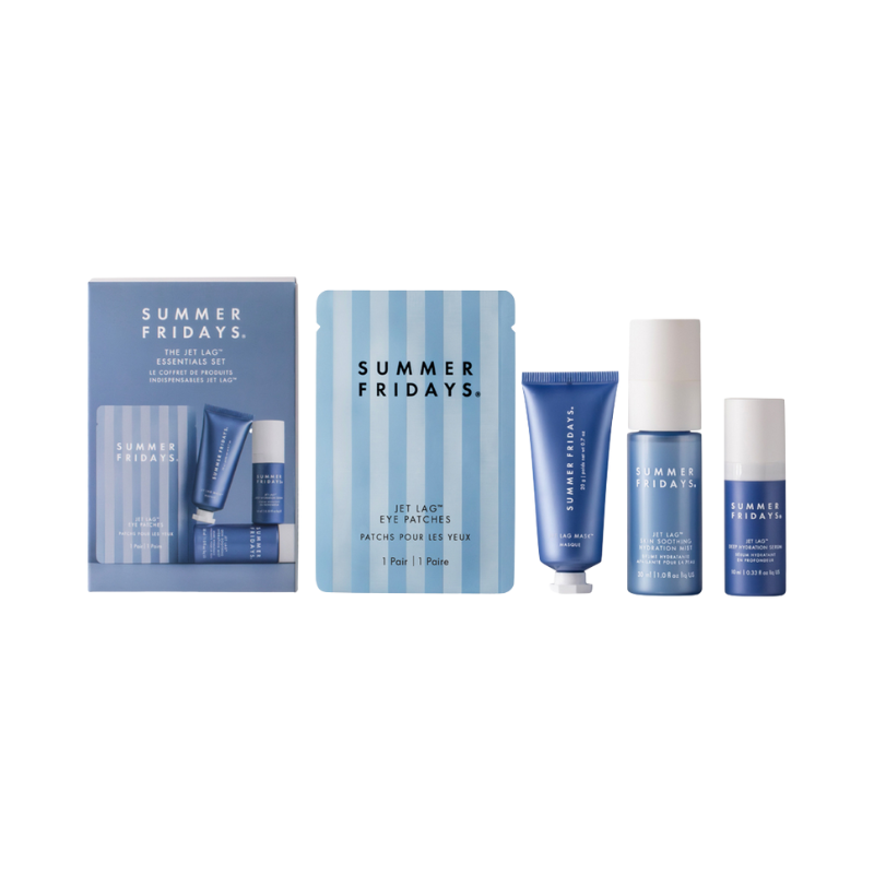 Incluye cuatro productos Jet Lag superventas. Un lujoso set de regalo para amantes del cuidado de la piel y amantes de los viajes.